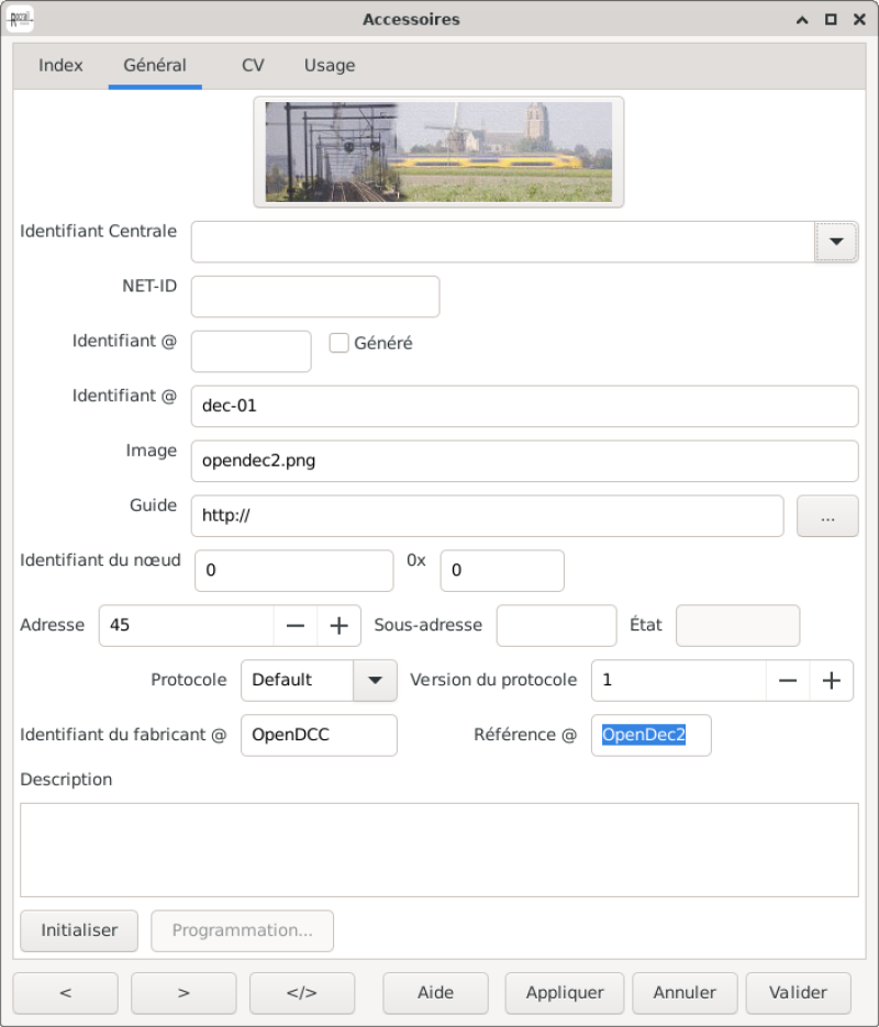 Ne définissez ceci que sur l'identifiant que vous l'avez défini dans rocrail.ini, si votre configuration possède plusieurs Centrales numériques connectés.