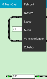 Anklicken der Lok öffnet die Lok-Liste. Auswahl einer Lok aus der Liste setzt die Lok in diesen Block.