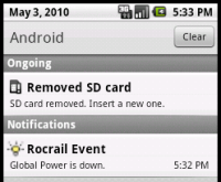 En cas de coupure d'alimentation une notification est affichée. L'activité du système sera visible si cette notification est touchée.