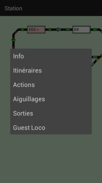 Sélectionner une action enverra une commande d'activation inconditionnelle au serveur Rocrail.