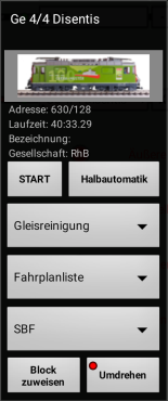 Ein Klick auf den Startknopf startet die Lok im Automodus.