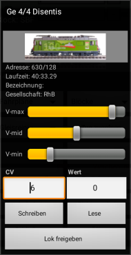Ein Kurzklick auf den Bereich für das Lokbild öffnet den Lokauswahl-Dialog.