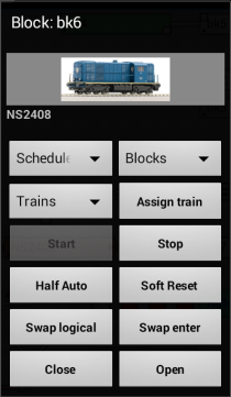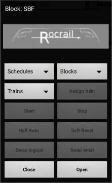 A short click on the Rocrail logo image opens the loco selection to set a loco in the empty block.