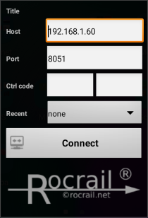 When andRoc starts, the connection dialog is opened. If a Rocrail Server is found by R2RNet it will be shown in the first field.