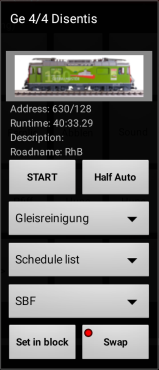 The red dot on the button shows, that there is already a train assigned to the loco.