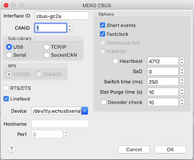 It uses the same ASCII framing as the CANGC1(e) interface. (See chapter 10 of the MERG “Developer’s Guide for CBUS”.)