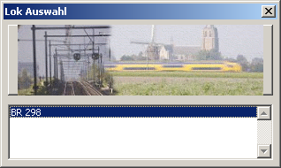 - mit der rechten Maustaste auf das Blocksymbol (hier soll es Block 01 sein) geklickt und Lokbelegung setzen… gewählt werden. Im sich öffnenden Fenster auf die Lok-Kennung und anschließend auf das Bild klicken. Hier wird das Lokbild angezeigt sofern es hinterlegt wurde, ansonsten die Eisenbahngleise und die niederländische Landschaft mit Windmühle: