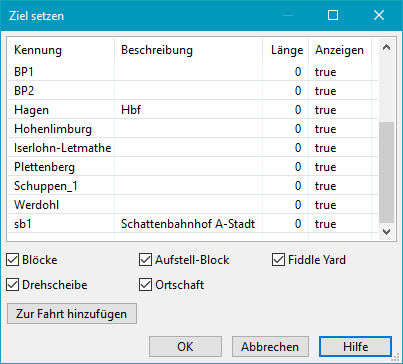 - Es wird dem Zug ein bestimmtes Ziel gesetzt