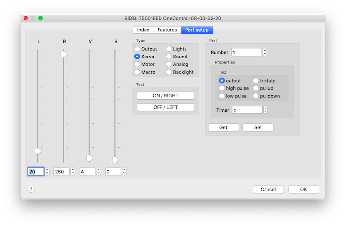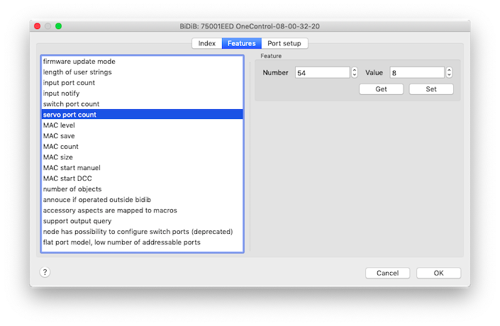 | This is a simple dialog for doing simple configuration jobs. For more sophisticated programming the BiDiB Wizard is recommended. |