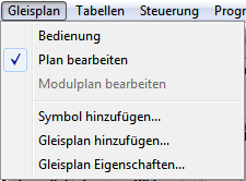 Der Gleisplan wird im Menü zur Bearbeitung freigeschaltet.