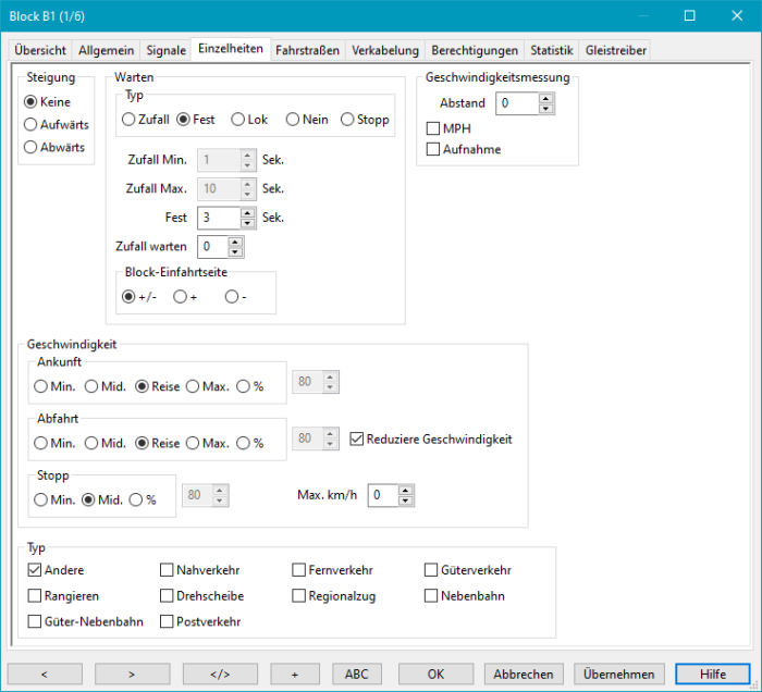 Die hier eingestellte Block-Geschwindigkeit gilt für alle Züge, die diesen Block befahren.