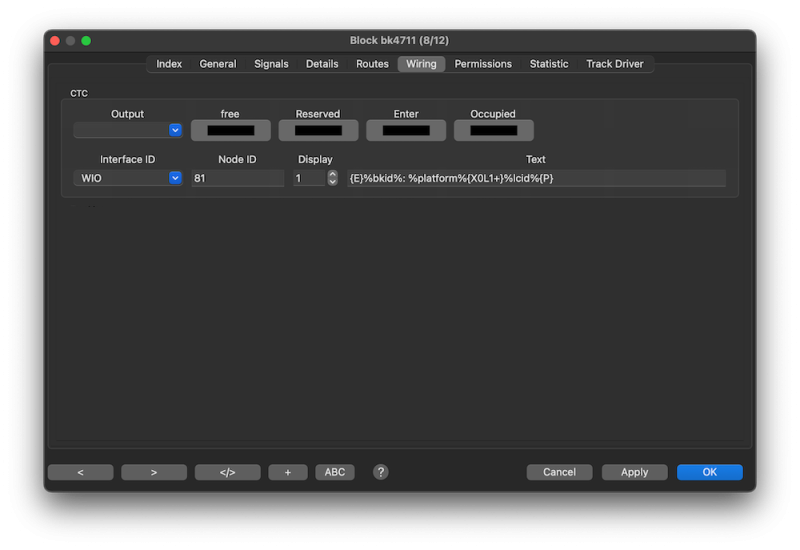 | %lcbes% | Locomotive block enter side as '<' or '>' |