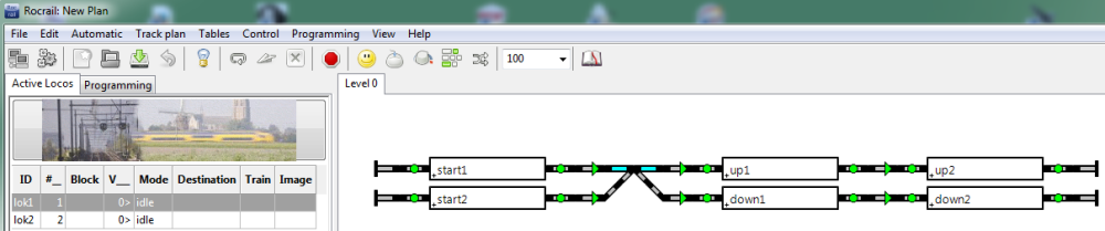 As you see we have two trains, lok1 with adress 1 and lok2 with adress 2.