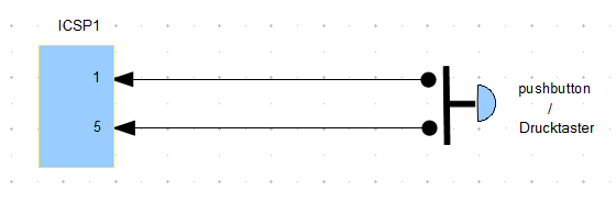 Ein optionaler Gleisspannungs-Drucktaster kann am ICSP-Anschluss an Stift 1 (RB7) und Stift 5 (Masse) hinzugefügt werden.