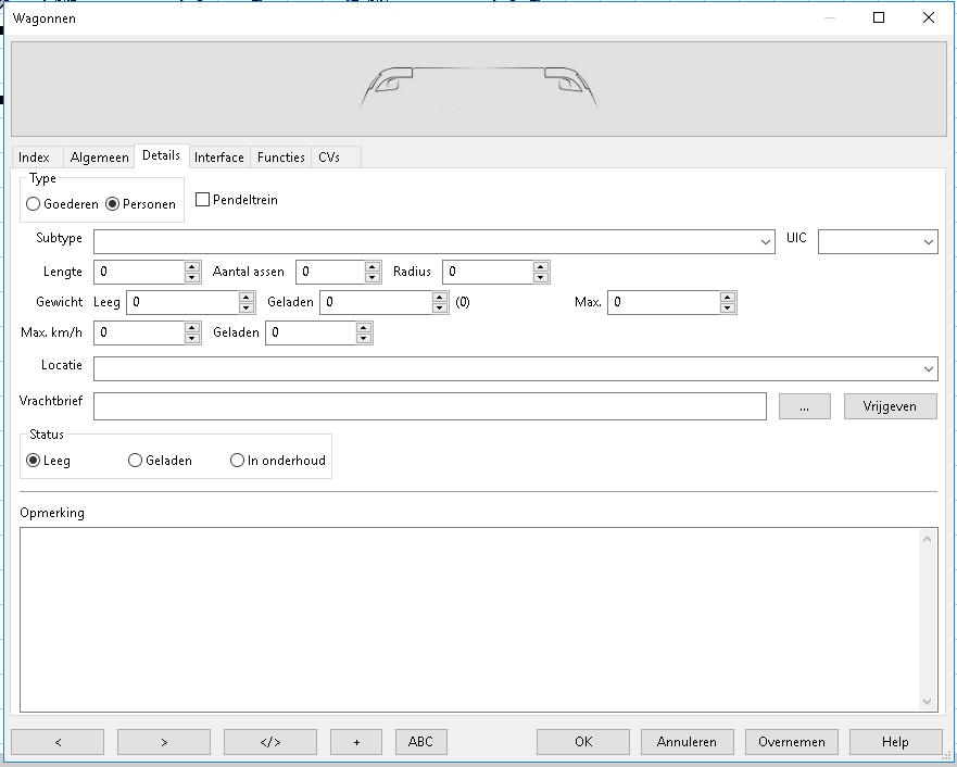 - Leeg (Empty) - De instellingen voor de "lege" wagon worden gebruikt