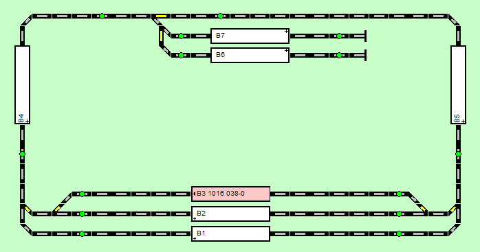 - Elk blok waartoe de trein toegang moet hebben, moet Pendel Treinen toelaten bevatten.
