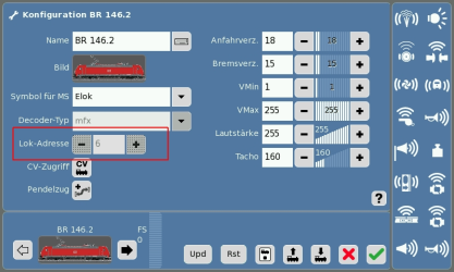 lokomotive .sid=0x6 .name=my new loc .adresse=0x53 .typ=mfx