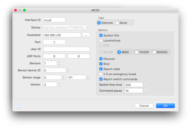 This dialog is also used for other command stations and contains options which are not used by the MCS2 library.