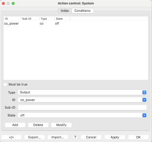 | Système | ac_co_power_off | stop-cmd | Sortie | co_power | on | Sortie | co_power | off | |