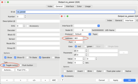 Sommaire → Matériels → Modules TCO → Configuration TCO Rocrail → TCO un bouton et deux LEDs