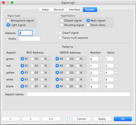 | Aspect number | Aspect value | Activated outputs as defined on the Interface Tab |