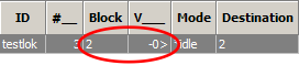 2 is shown in column Block. The meaning is the loco is in block 2 and the block enter side is +.