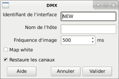 | Adresse | Adresse du périphérique DMX entre 1 et 512 |