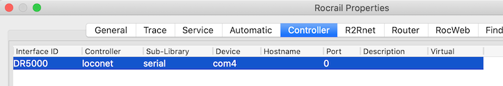 | COM4 | /dev/ttyACM0 | /dev/tty.usbmodem1411 | LocoNet | loconet | LocoBuffer | 57600 |