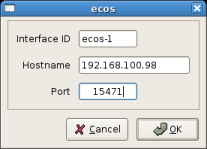 Nu kunnen de gegevens in Rocrail worden ingevoerd. Start de Rocrail server en de Rocrail GUI. Kies File/Rocrail properties tab Controler en maak een nieuw controler aan van het type "ecos". Vul hier het IP adres (zoals hierboven opgegeven) in en het portnummer 15471 (dit moet altijd deze waarde hebben). Verwijder niet gebruikte controlers en herstart Rocrail server en GUI.