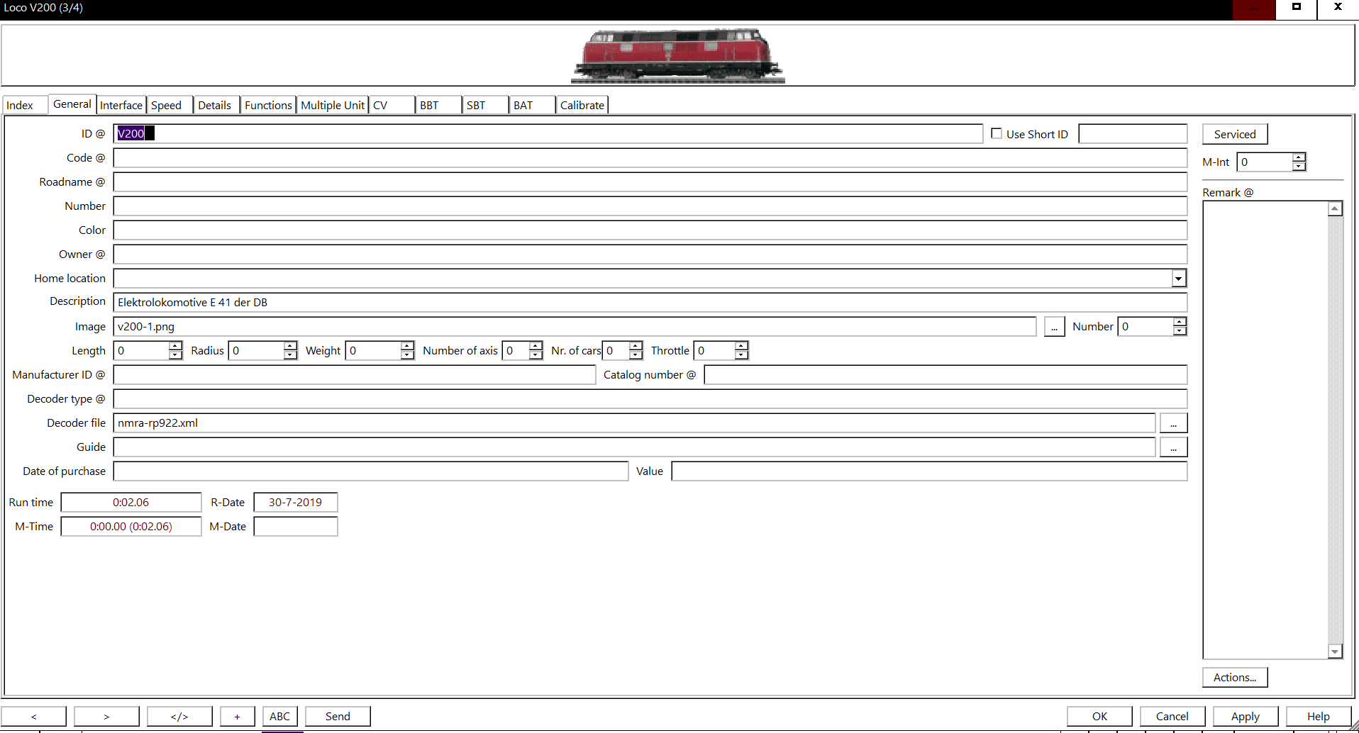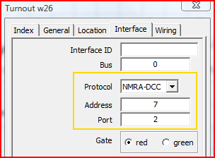 Op het tabblad Interface wordt nu het adres opgegeven worden. Het Interface ID dient leeggelaten te worden! De andere loc gegevens kunnen hier ook ingevuld worden, zoals de Decoder steps, V_Mode, V_Min, V_Mid en V_Max.