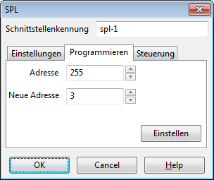 Mit dem SPL-Dialog kann die Adresse eines Moduls programmiert werden.