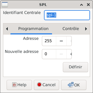 Avec la fenêtre de dialogue SPL l'adresse d'un module peut être programmée.