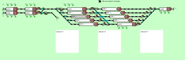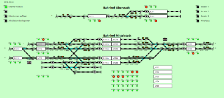 | Station areas in a designer. | Station areas schematically in Rocrail. |