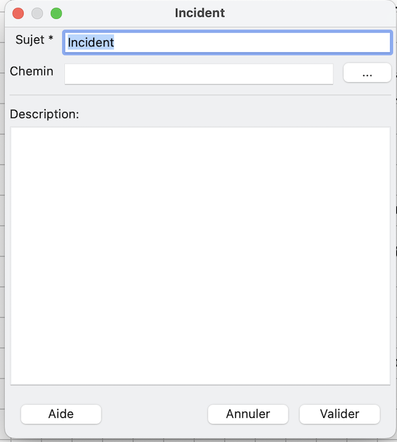 - Écrivez dans la fenêtre de dialogue "Incident" une liste pas-à-pas permettant la reproduction de l'incident.