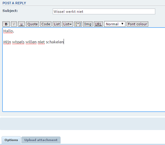 - Schrijf tekst in het Onderwerp veld. Bij voorbeeld: "Wissel werkt niet".