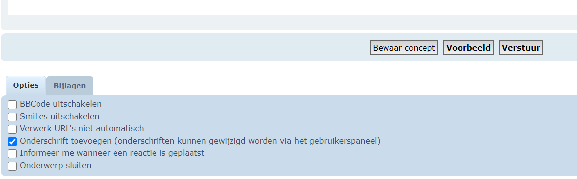 Aan de onderkant van het forum bijdrage is een functie aanwezig 'Upload Bijlage".