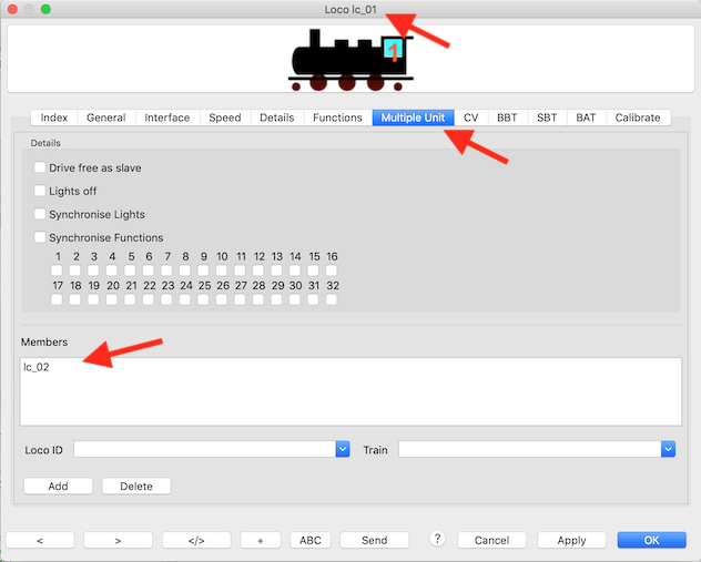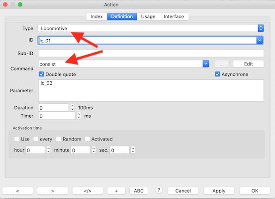 | Consist | Multiple Units | couple a locomotive to a locomotive | | a) manual operated b) by action c) XML script |