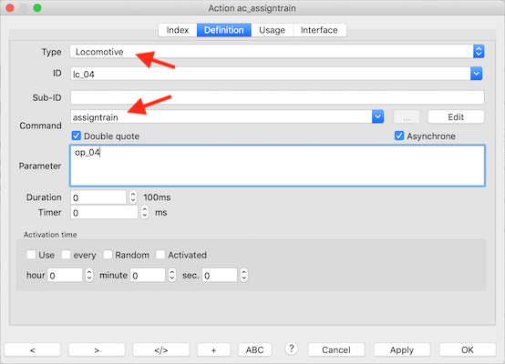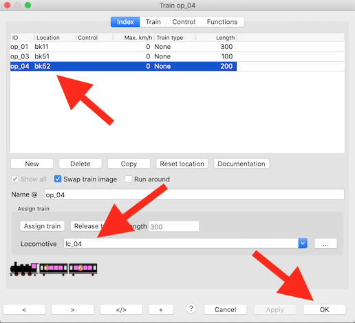 | Assign Train | Assign Train | assign a "Rocrail-train" to a locomotive | | a) manual operated b) by action c) XML script |