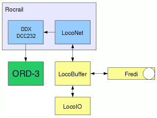 | Rocrail CS overview with ORD-3 LocoNet compatible Modules |