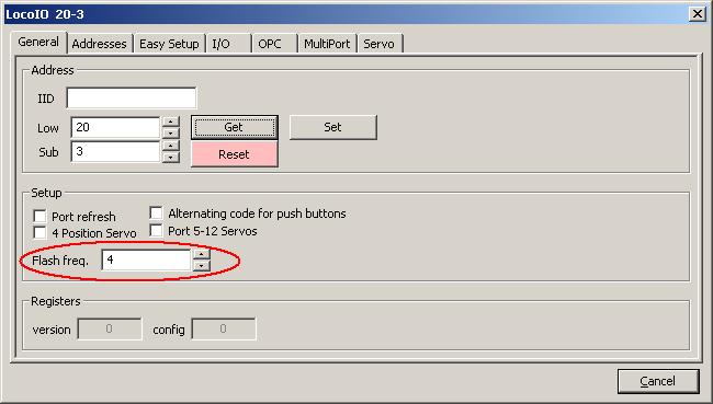 | Flash freq. | Blinkfrequenz (0 bis 15) gilt für alle 'flash'-Ports |