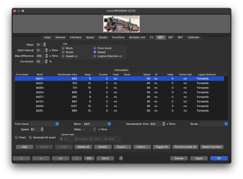 - After editing the loco Train the previous calculated BBT will probably no longer fit because of the changed load; Extra learning stops are needed.