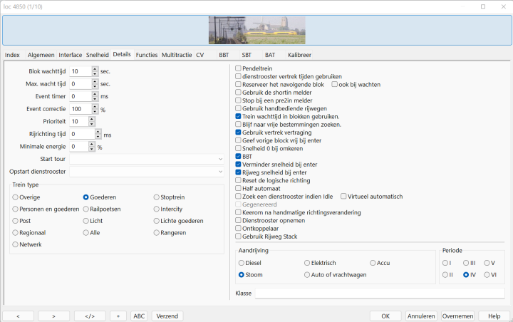 Bij het gebruiken van de optie treinen in het tabblad Besturing Treinstel of Consist, wordt het hier ingevulde treintype genegeerd.