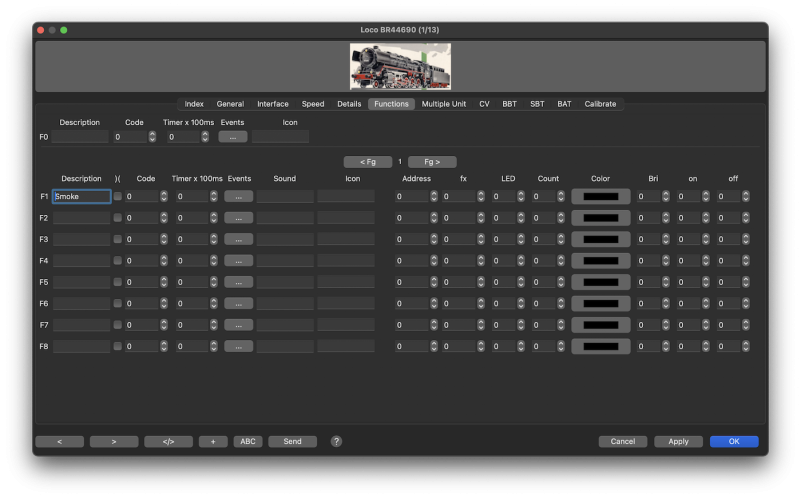 - Index | General | Interface | Speed | Details | Functions | Multiple Units | CV's | BBT | SBT | BAT | Calibrate | Maintenance | Shunting Mode