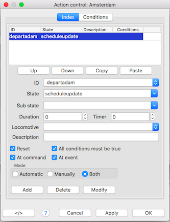 - If the train is not in auto mode, the first start command will set it in auto mode and a second start command will allow it to depart.