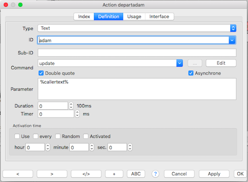 In case of actions the %callertext% variable will be set with plain ASCII or HTML.