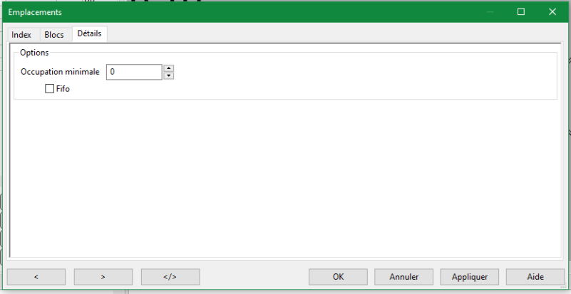 Emplacement 1 a FiFo actif et occupation minimale 3.