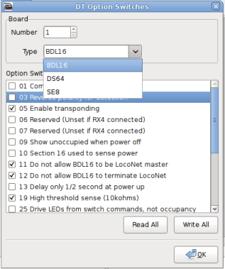 Rocrail supports with this dialog reading and writing of Option Switches for the following decoders: