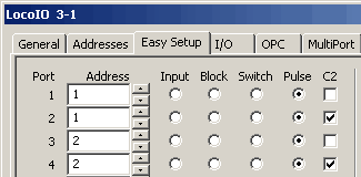 LocoIO Dialog, Registerkarte 'Einfaches Setup'
