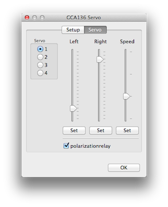 Programming commands are send directly after releasing the thumb of the sliders or by selecting the relay or servo selection.