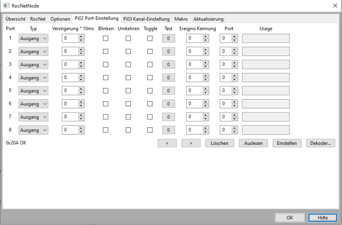![]() | Port 1-8 are set to control 8 switching outputs of GCA76. |